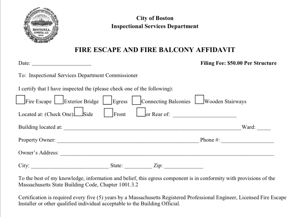 Fire Escape Affidavits In Boston, MA